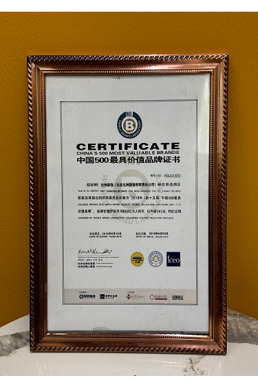 中國500最具價值品牌證書